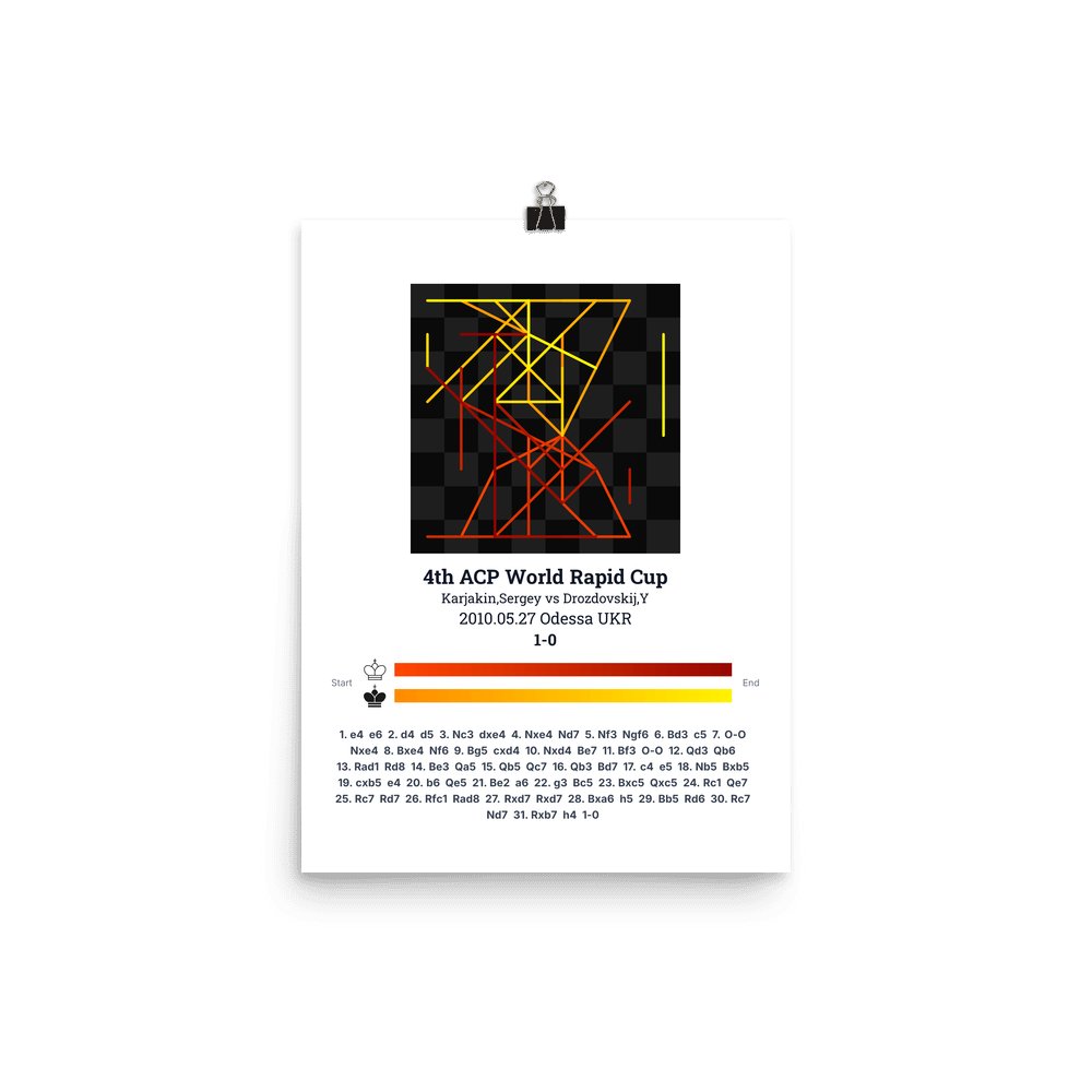 Museum-quality poster on thick, durable matte paper. A sharp, clean look for any chess visualisation.