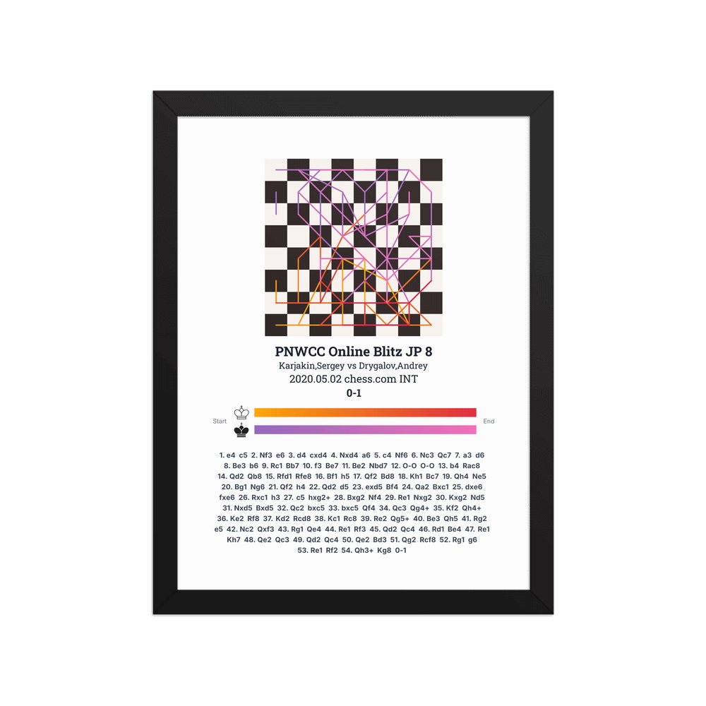 Museum-quality poster on thick, durable matte paper. A sharp, clean look for any chess visualisation.