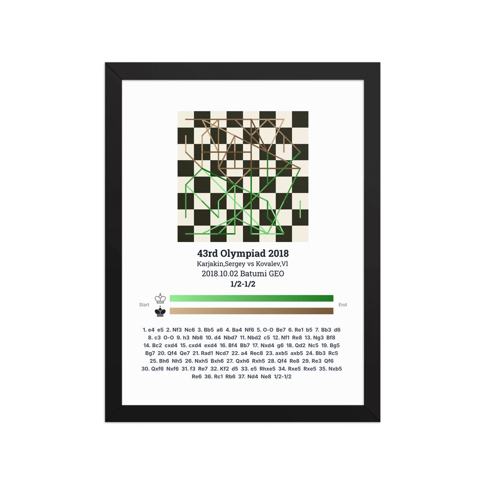Museum-quality poster on thick, durable matte paper. A sharp, clean look for any chess visualisation.