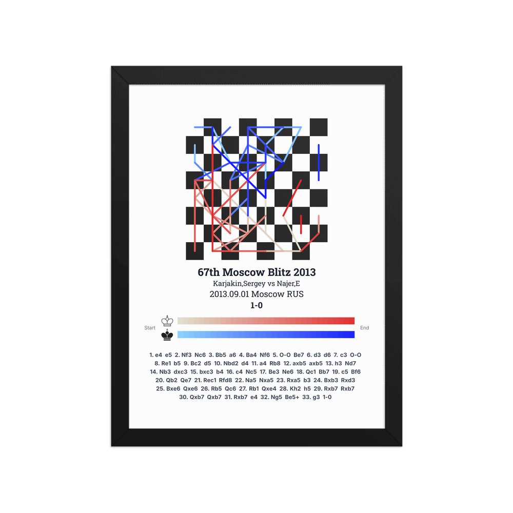 Museum-quality poster on thick, durable matte paper. A sharp, clean look for any chess visualisation.