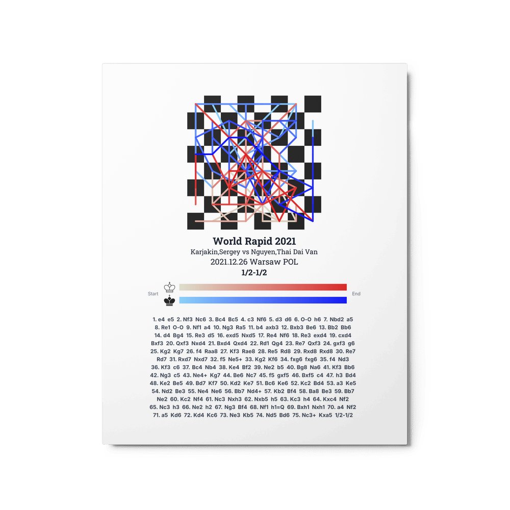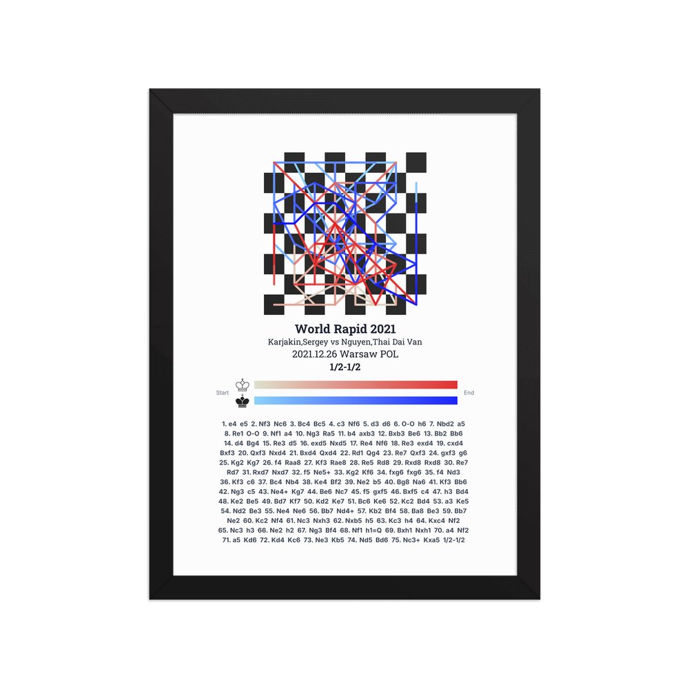 Museum-quality poster on thick, durable matte paper. A sharp, clean look for any chess visualisation.
