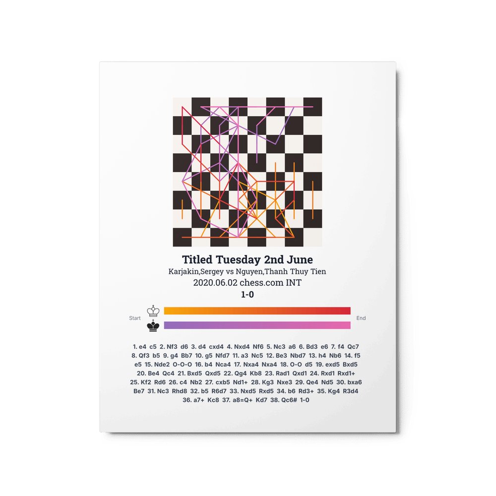 Museum-quality poster on thick, durable matte paper. A sharp, clean look for any chess visualisation.