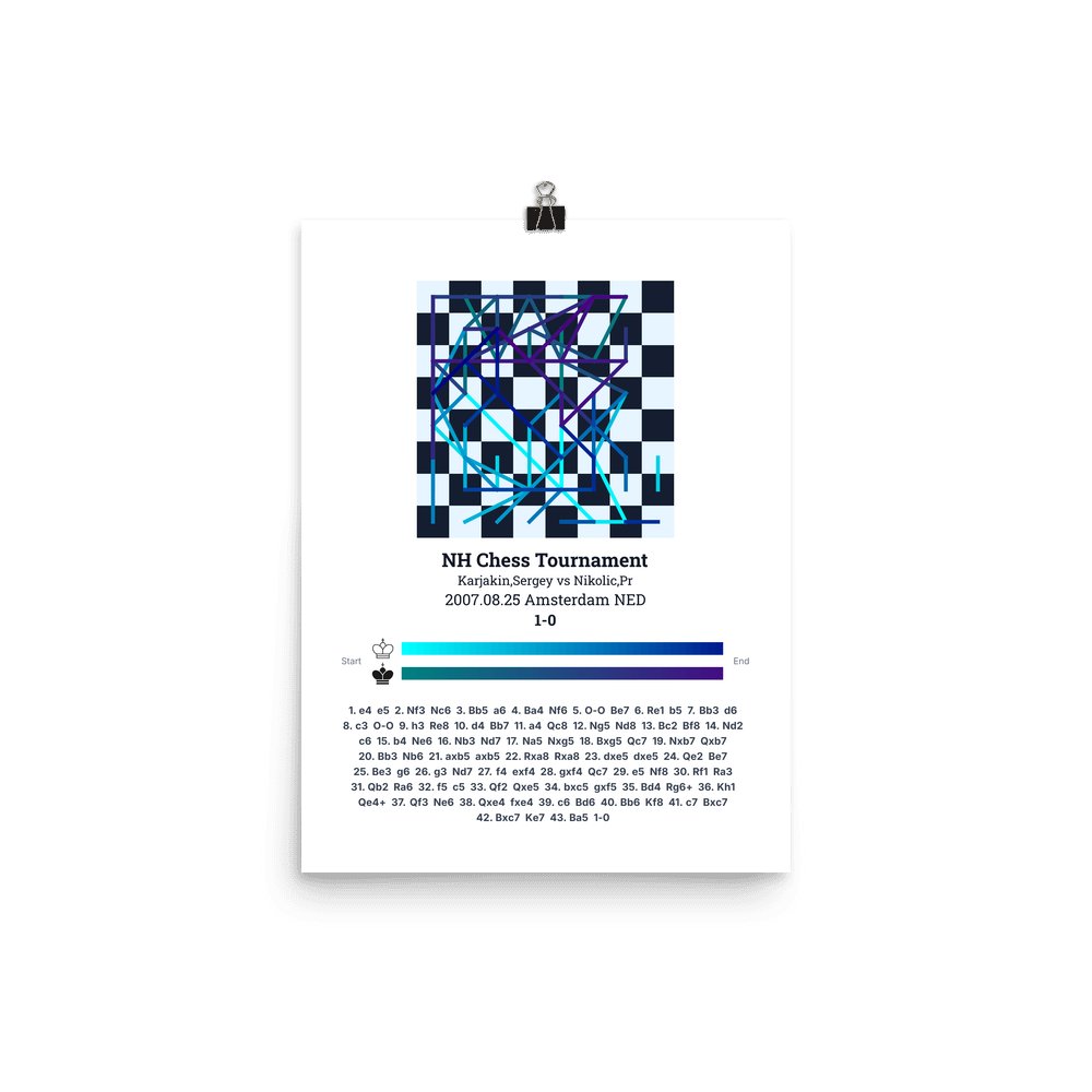 Museum-quality poster on thick, durable matte paper. A sharp, clean look for any chess visualisation.