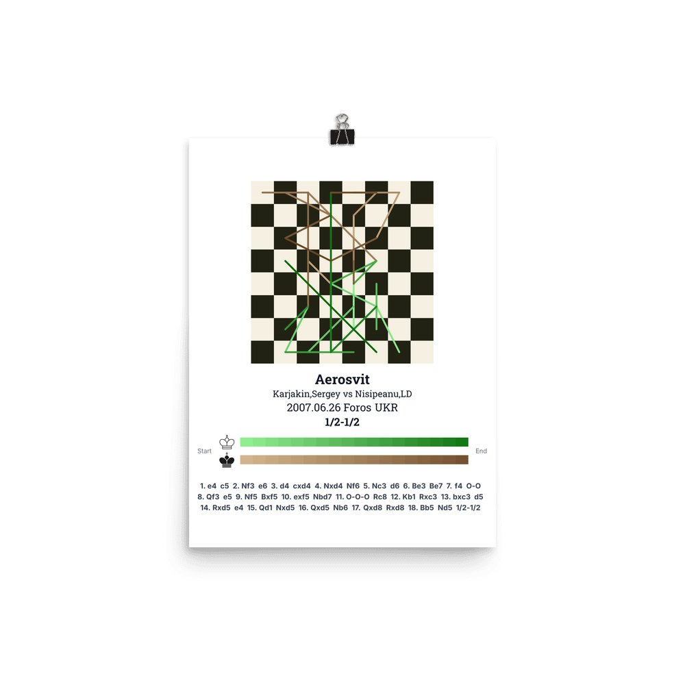 Museum-quality poster on thick, durable matte paper. A sharp, clean look for any chess visualisation.