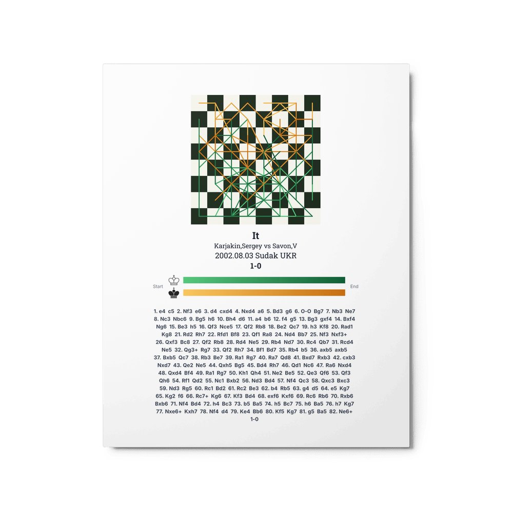 Museum-quality poster on thick, durable matte paper. A sharp, clean look for any chess visualisation.