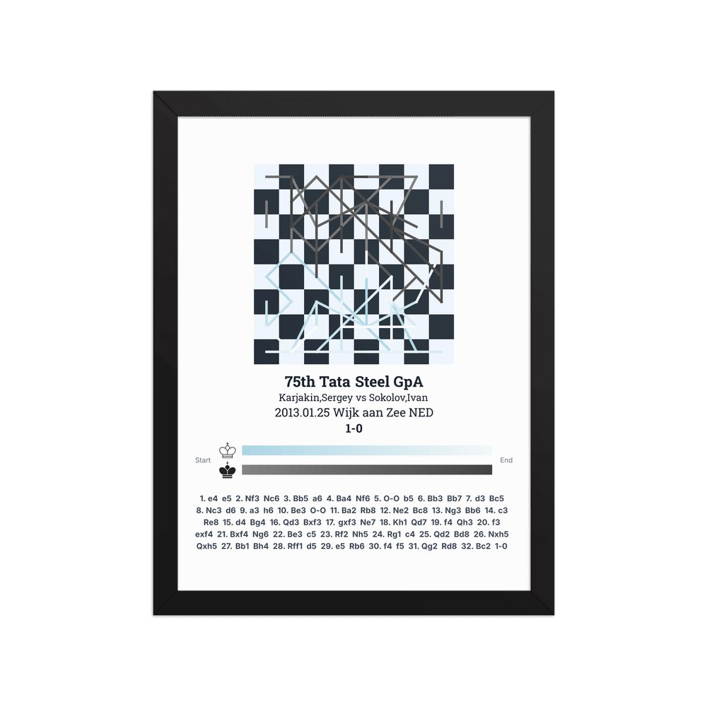 Museum-quality poster on thick, durable matte paper. A sharp, clean look for any chess visualisation.