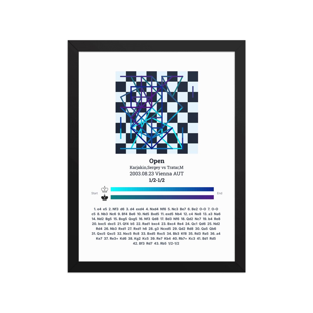 Museum-quality poster on thick, durable matte paper. A sharp, clean look for any chess visualisation.