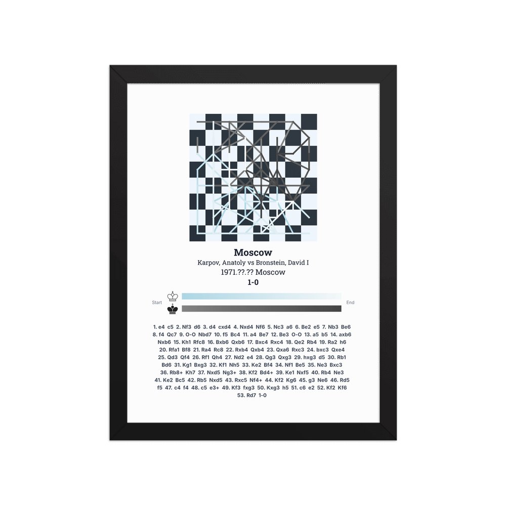 Museum-quality poster on thick, durable matte paper. A sharp, clean look for any chess visualisation.
