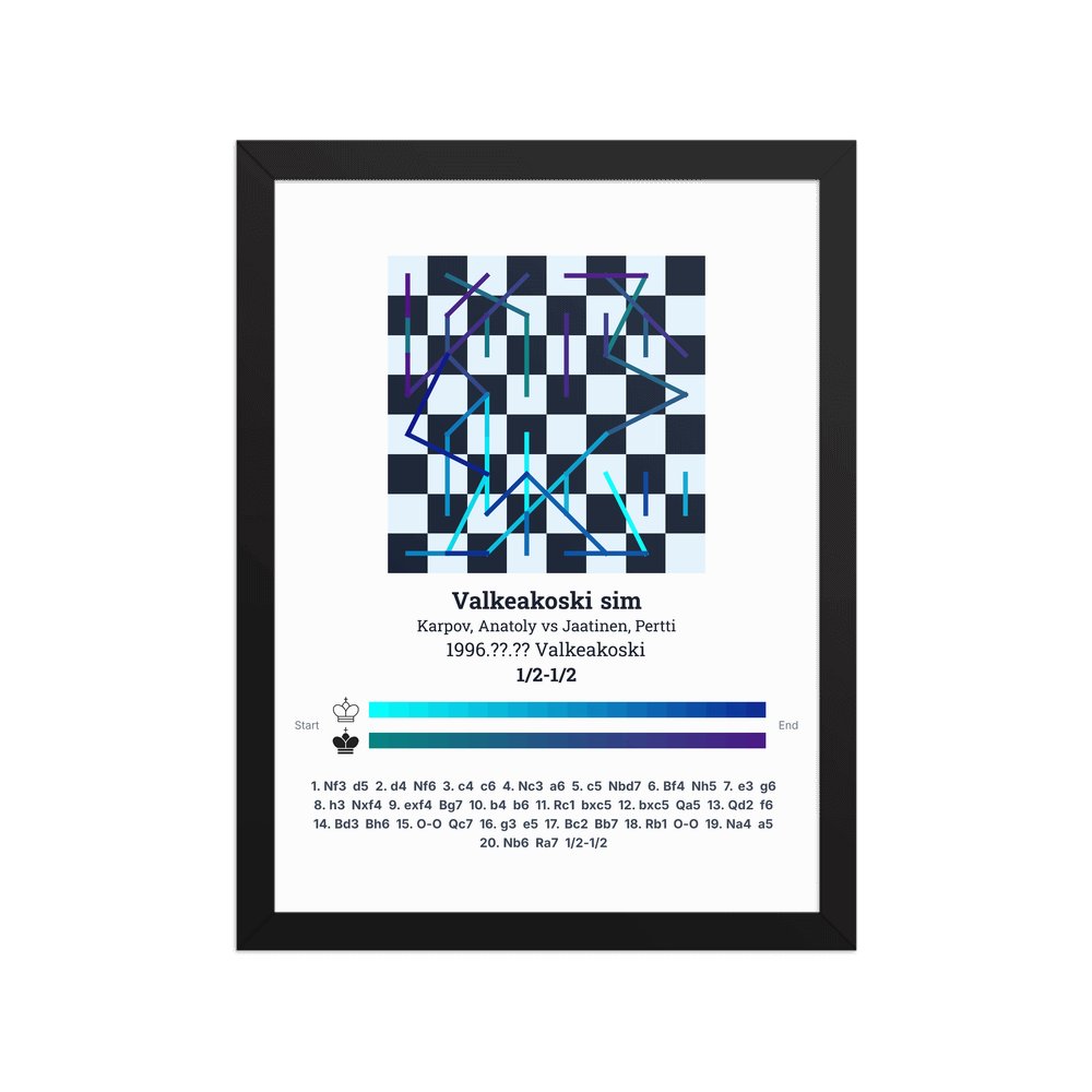 Museum-quality poster on thick, durable matte paper. A sharp, clean look for any chess visualisation.