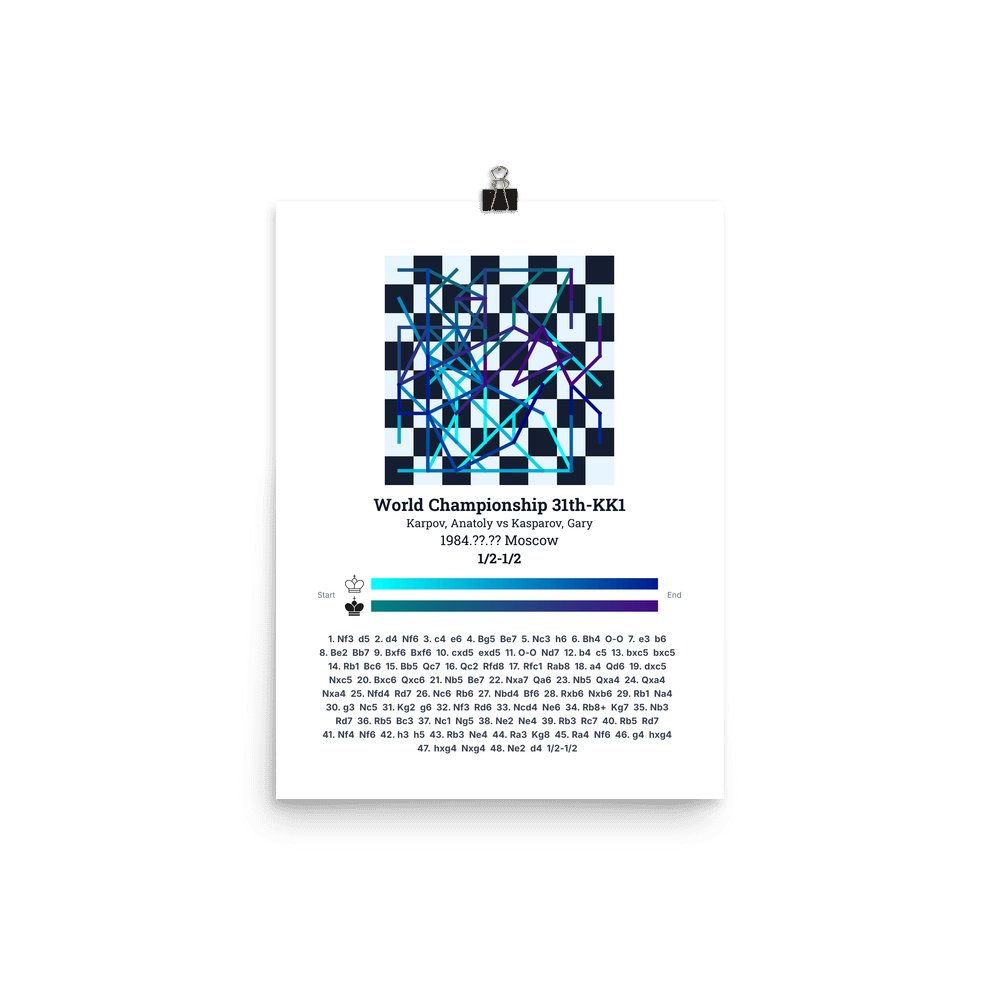 Museum-quality poster on thick, durable matte paper. A sharp, clean look for any chess visualisation.
