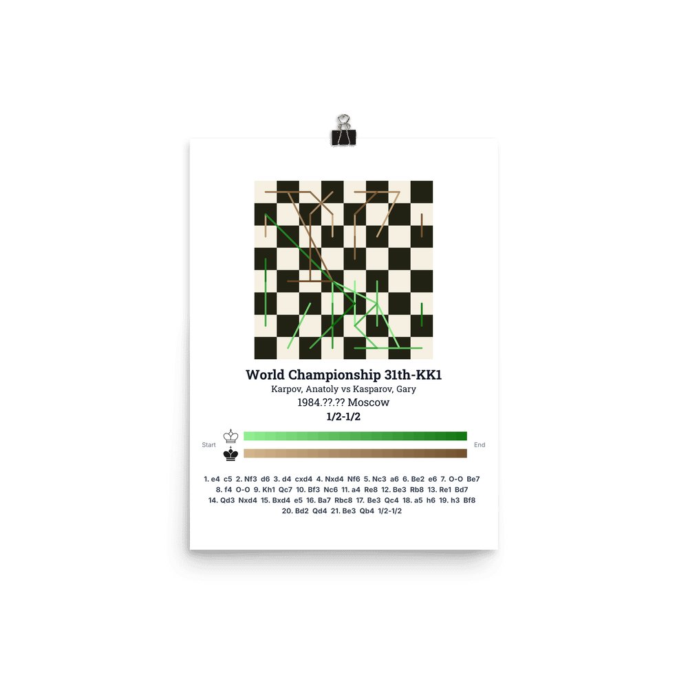 Museum-quality poster on thick, durable matte paper. A sharp, clean look for any chess visualisation.