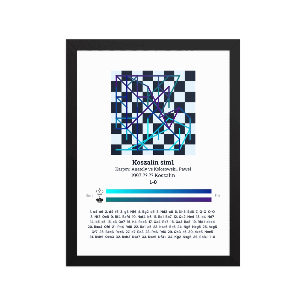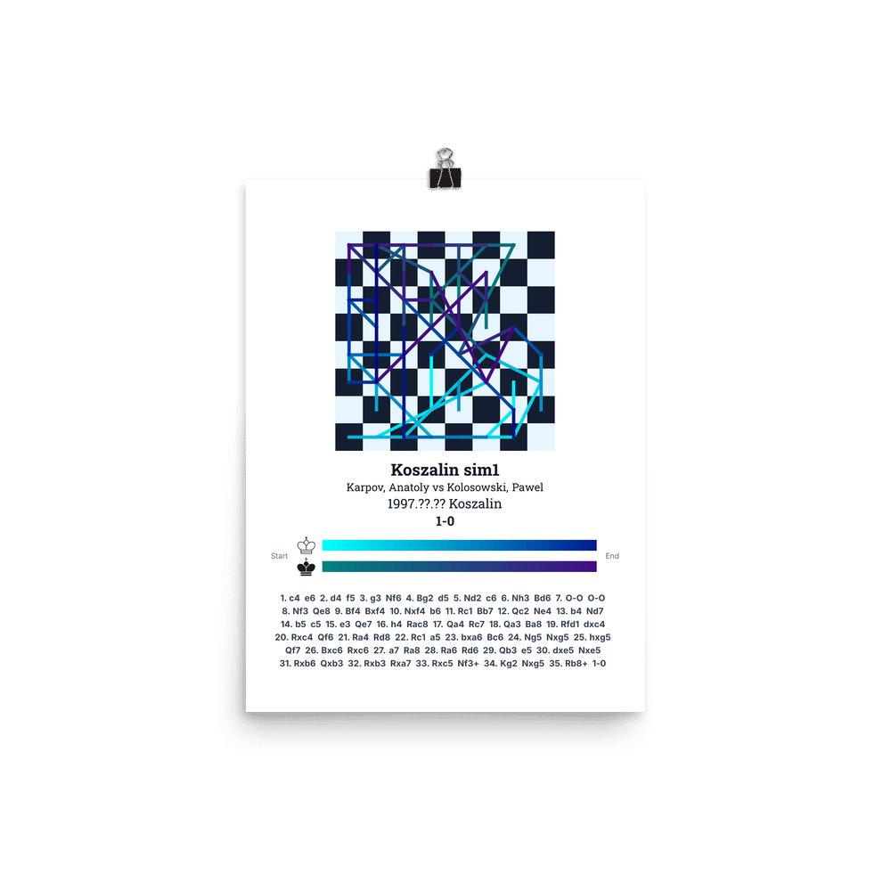 Museum-quality poster on thick, durable matte paper. A sharp, clean look for any chess visualisation.