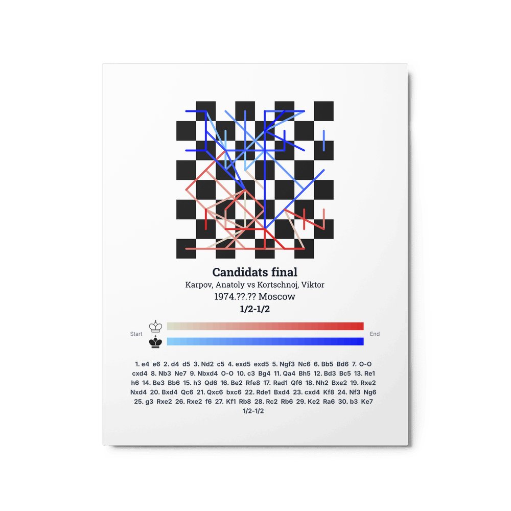 Museum-quality poster on thick, durable matte paper. A sharp, clean look for any chess visualisation.