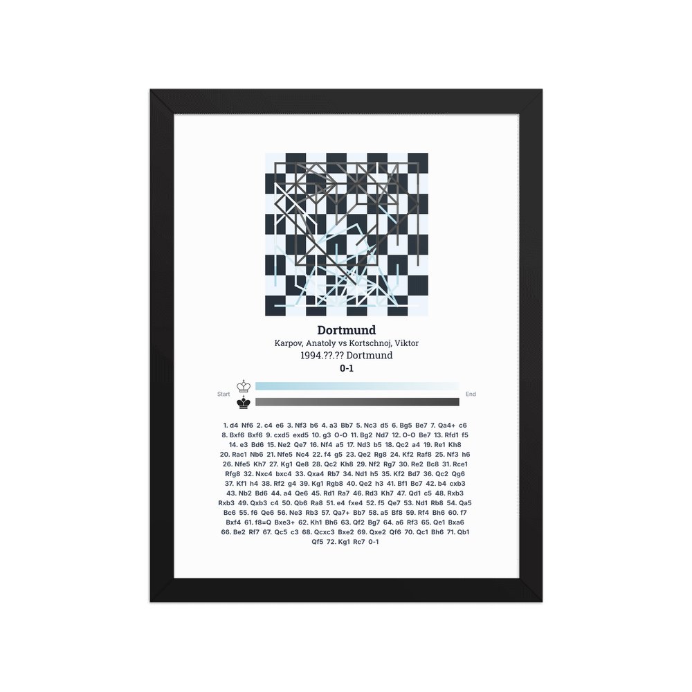 Museum-quality poster on thick, durable matte paper. A sharp, clean look for any chess visualisation.