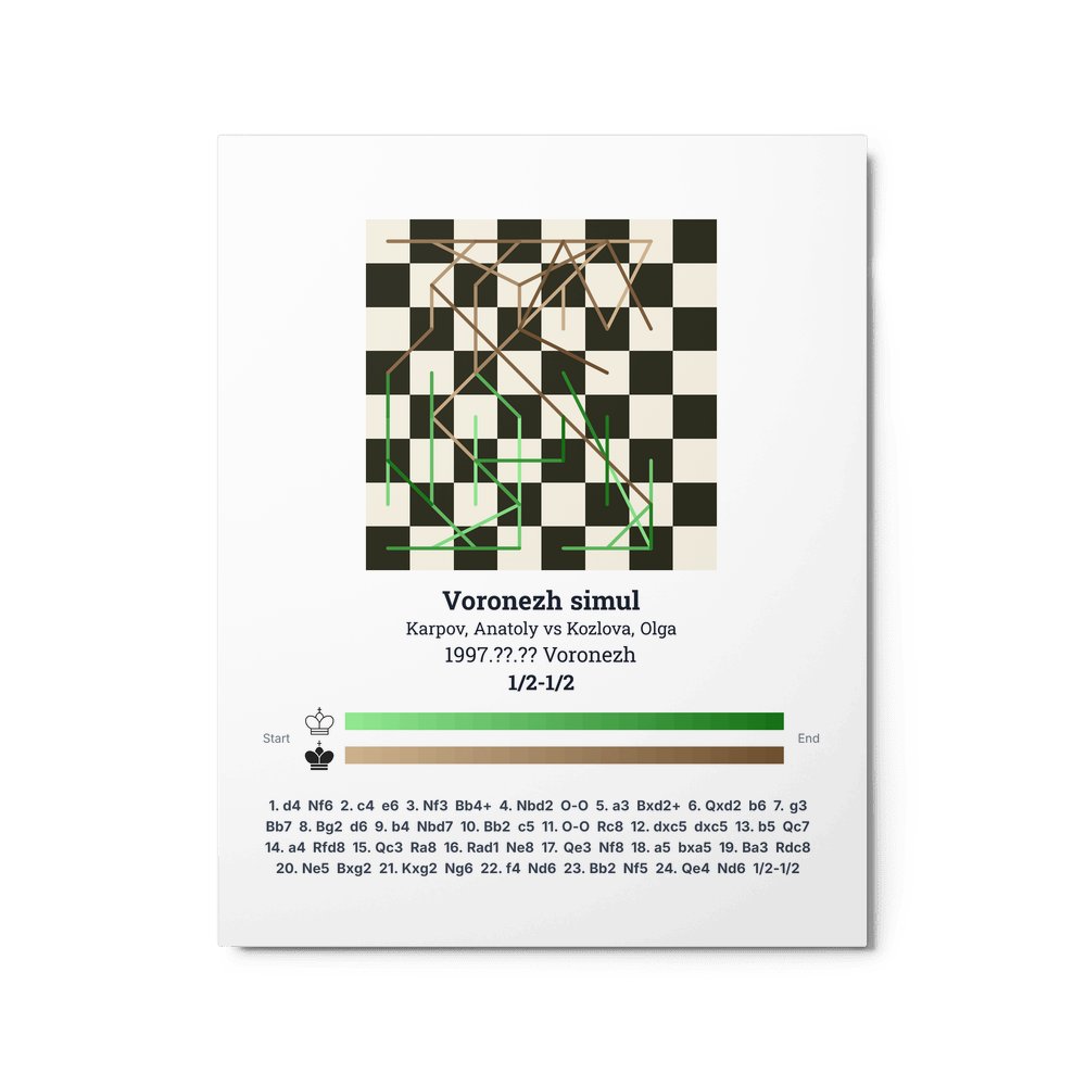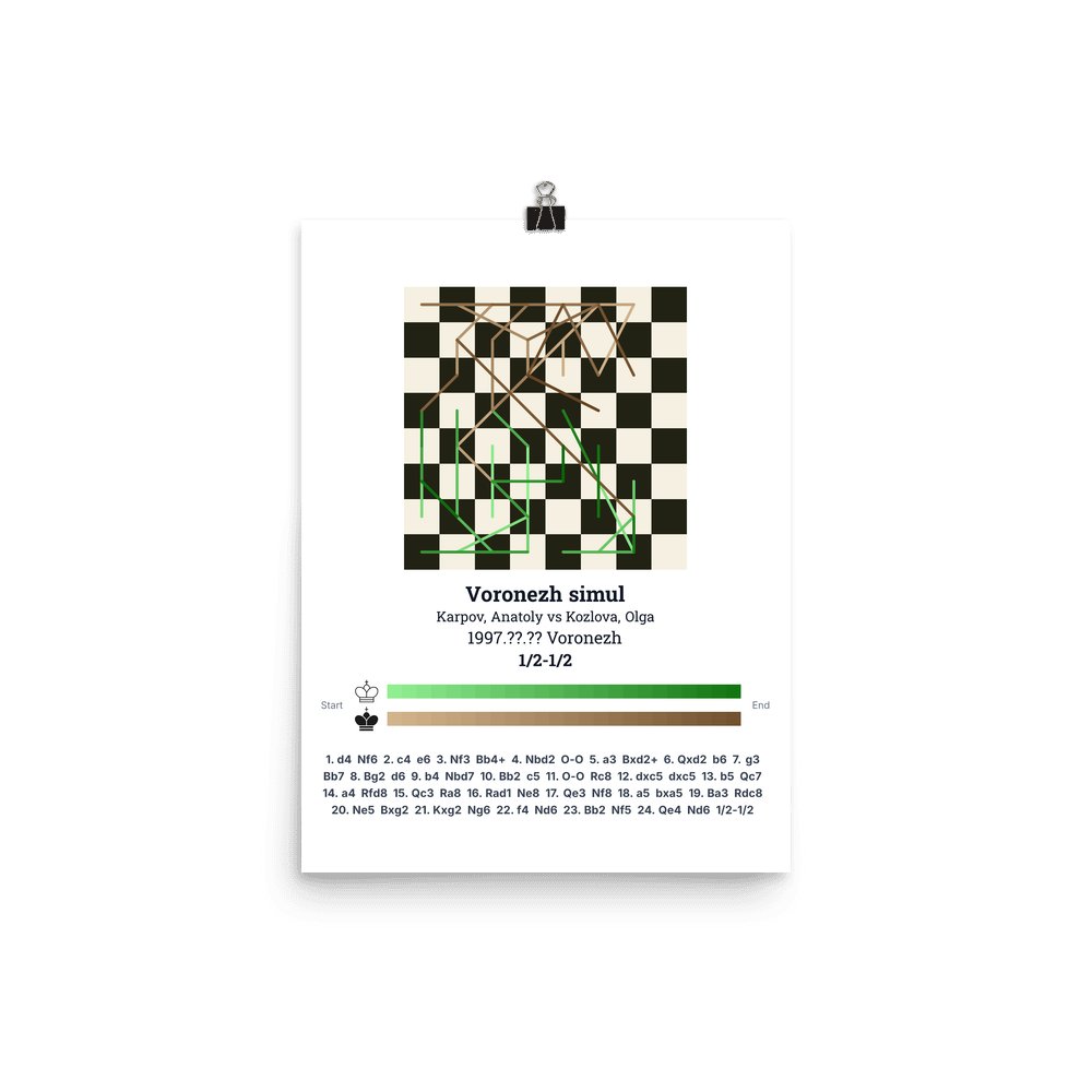 Museum-quality poster on thick, durable matte paper. A sharp, clean look for any chess visualisation.