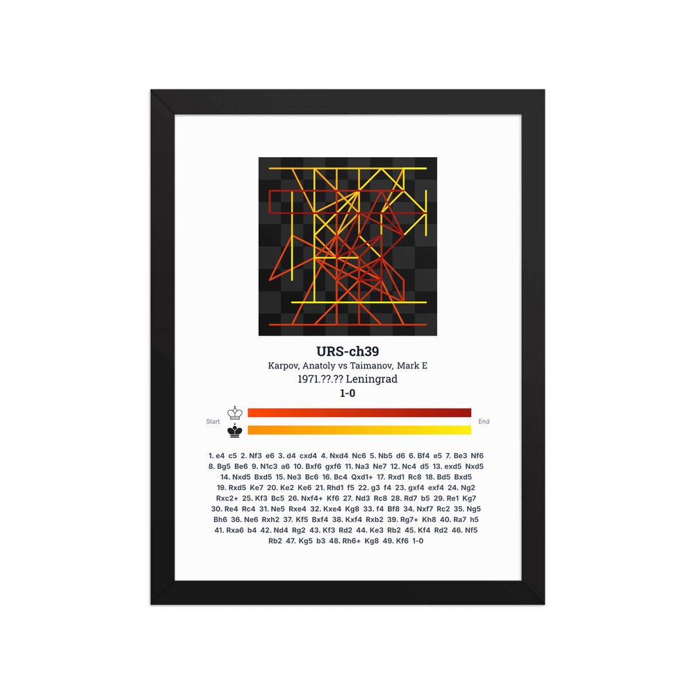 Museum-quality poster on thick, durable matte paper. A sharp, clean look for any chess visualisation.