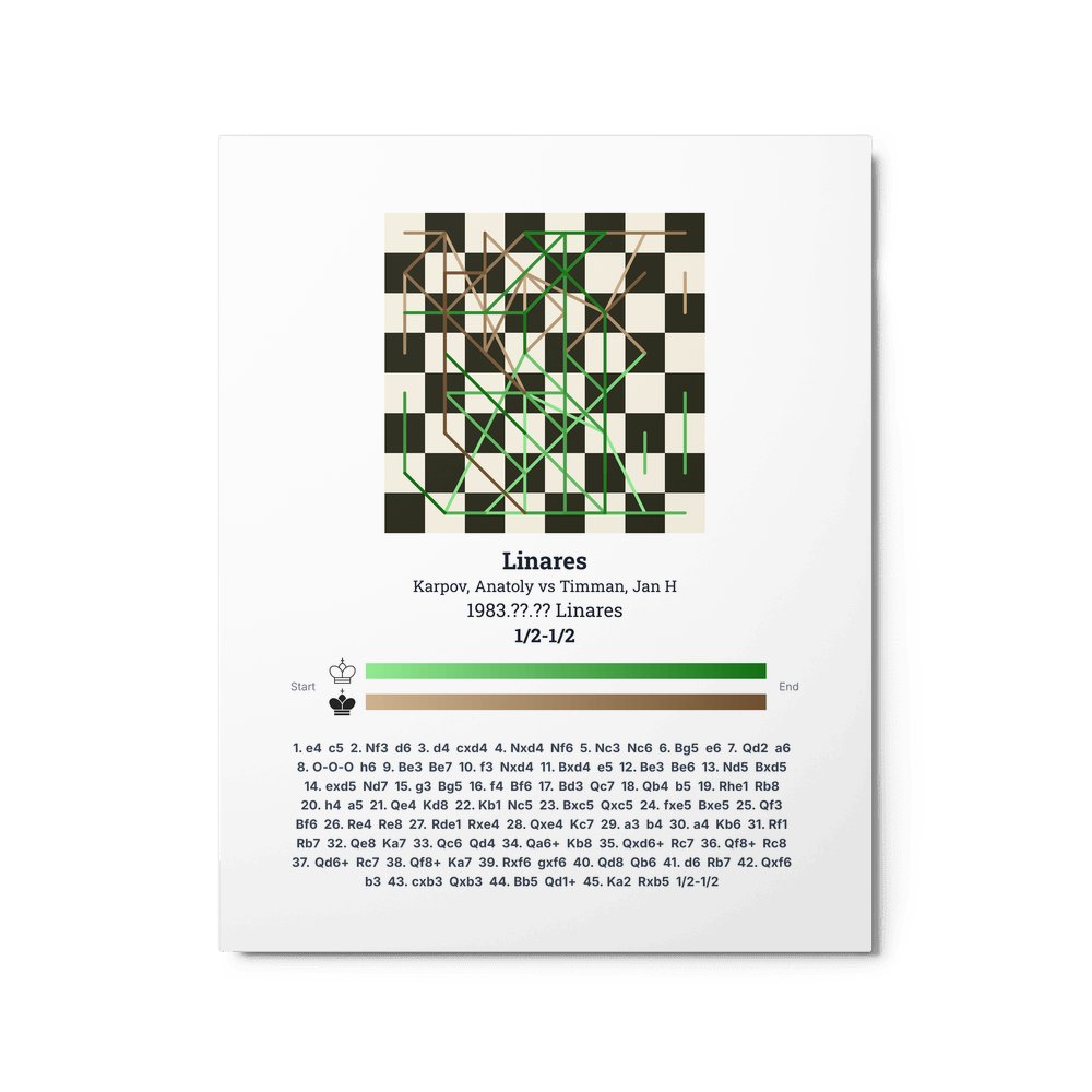 Museum-quality poster on thick, durable matte paper. A sharp, clean look for any chess visualisation.