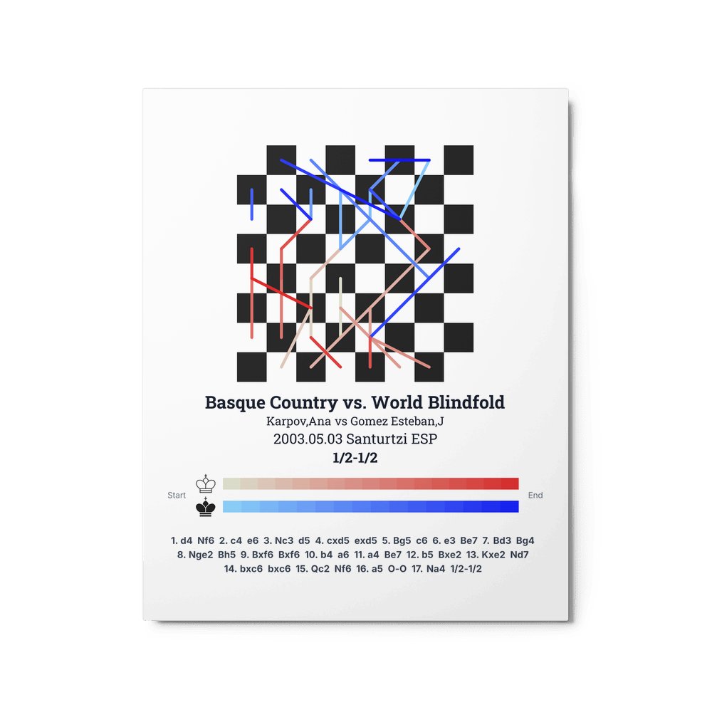 Museum-quality poster on thick, durable matte paper. A sharp, clean look for any chess visualisation.