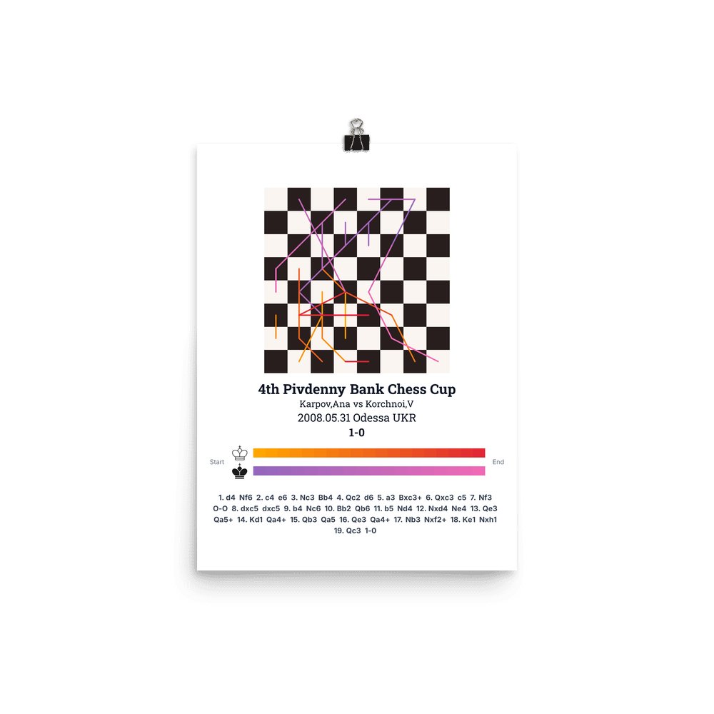 Museum-quality poster on thick, durable matte paper. A sharp, clean look for any chess visualisation.