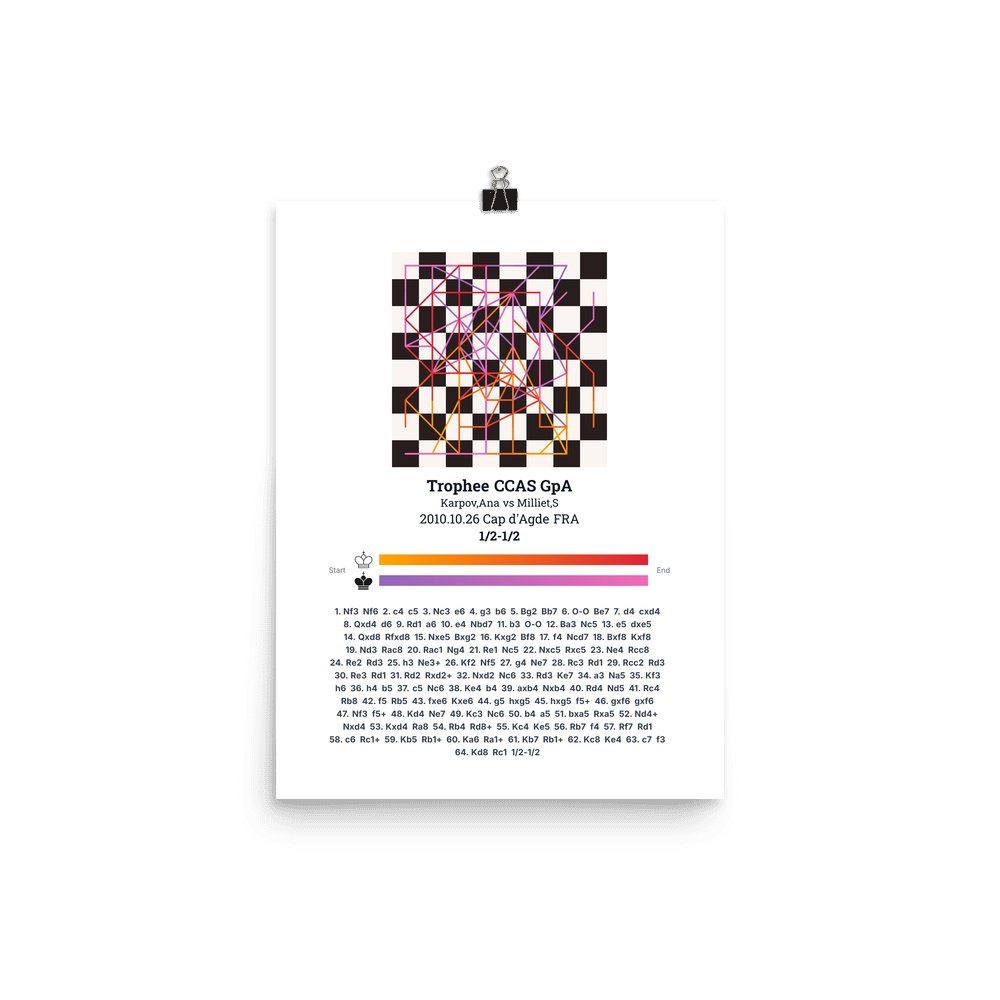 Museum-quality poster on thick, durable matte paper. A sharp, clean look for any chess visualisation.