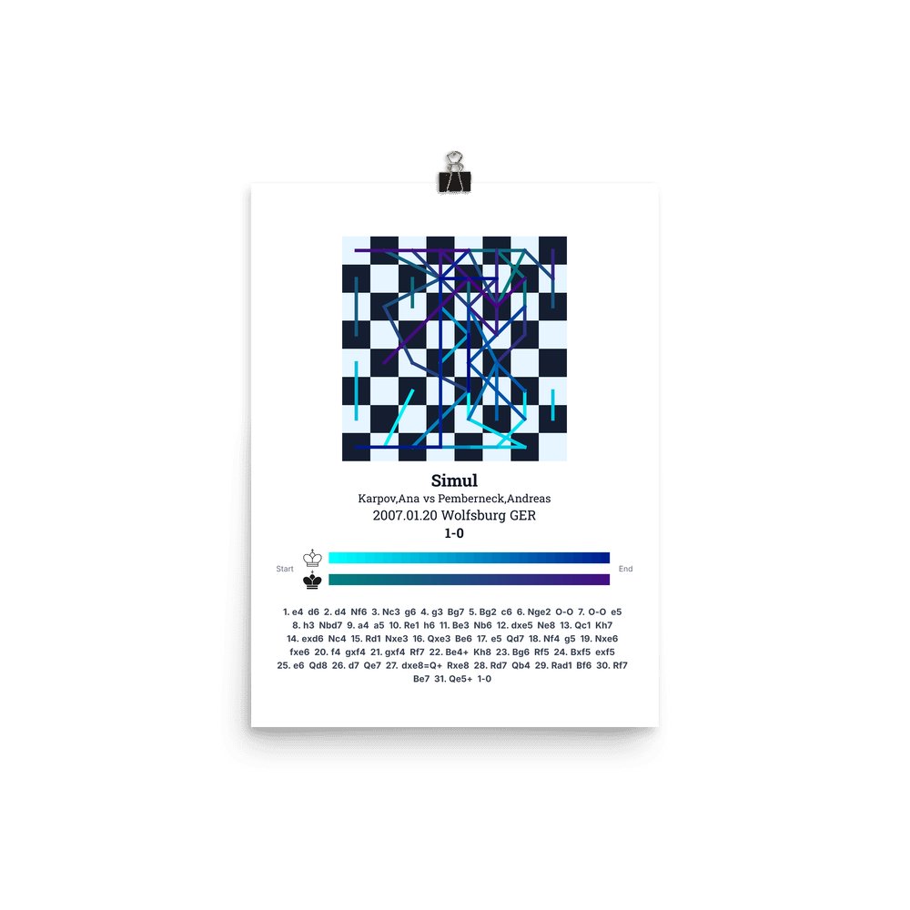 Museum-quality poster on thick, durable matte paper. A sharp, clean look for any chess visualisation.