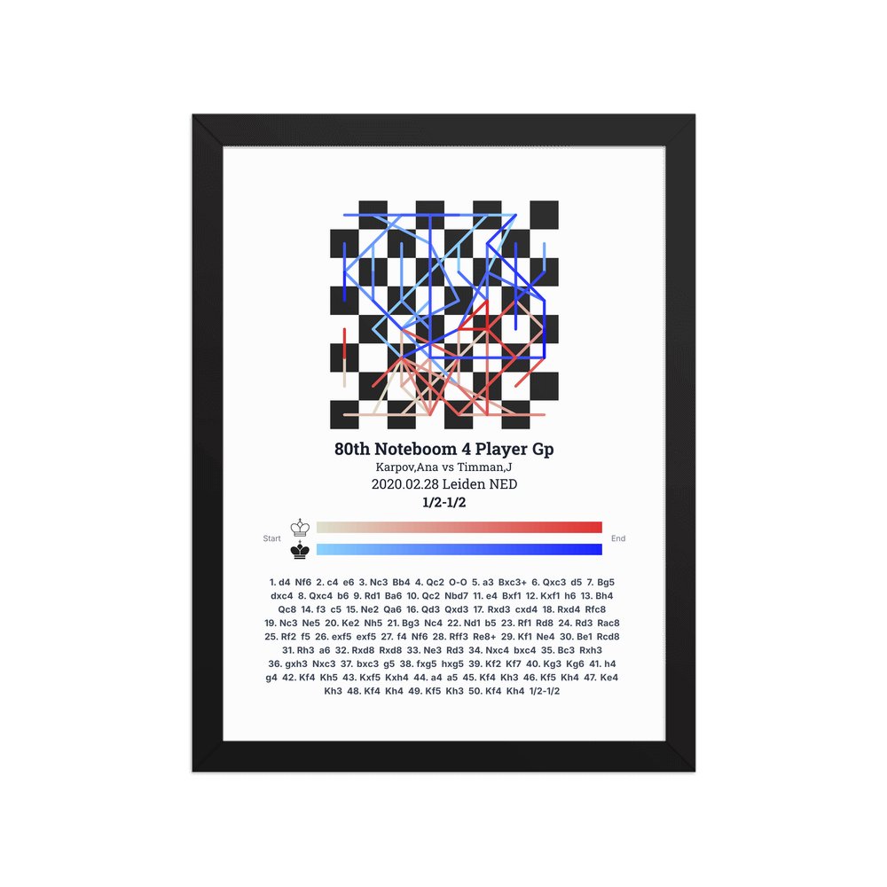 Museum-quality poster on thick, durable matte paper. A sharp, clean look for any chess visualisation.