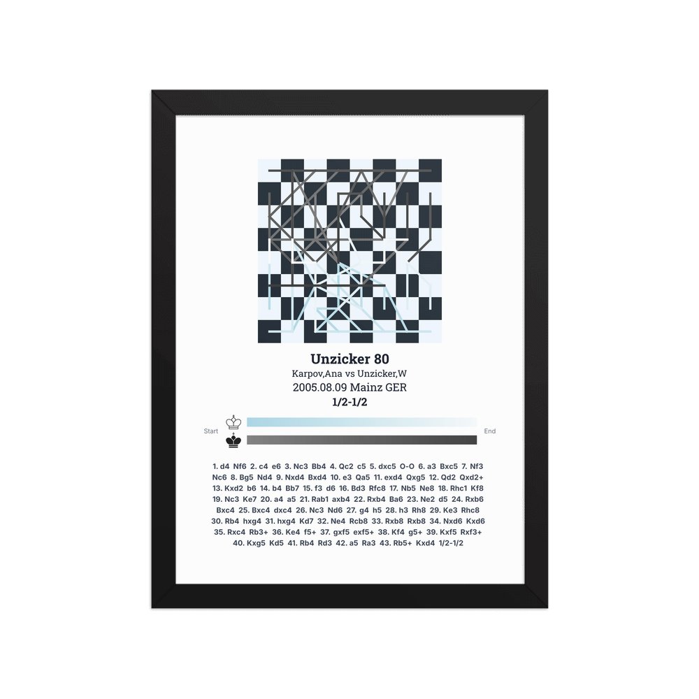 Museum-quality poster on thick, durable matte paper. A sharp, clean look for any chess visualisation.
