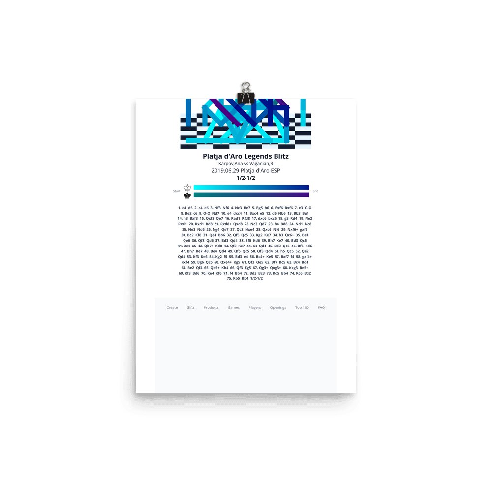Museum-quality poster on thick, durable matte paper. A sharp, clean look for any chess visualisation.