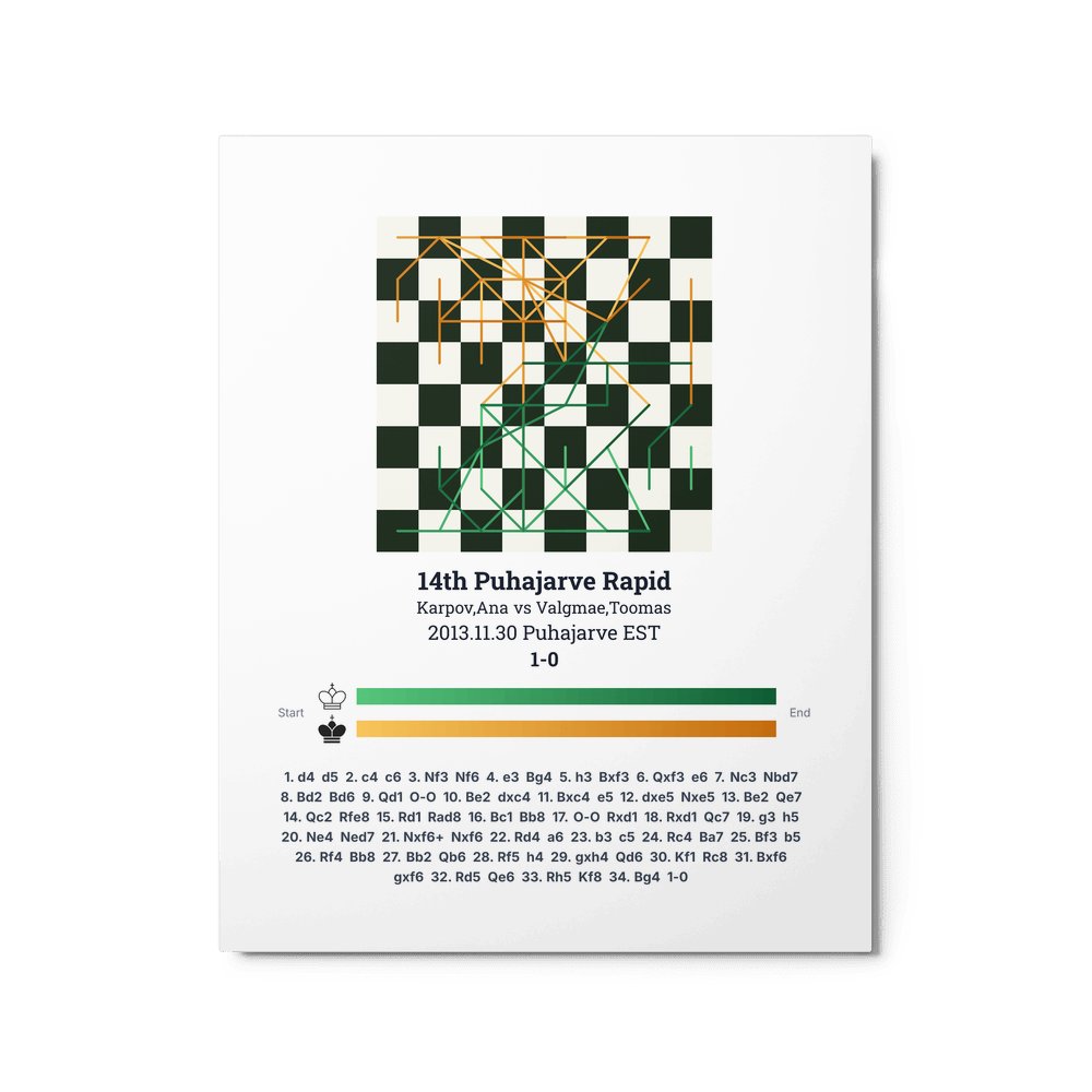 Museum-quality poster on thick, durable matte paper. A sharp, clean look for any chess visualisation.
