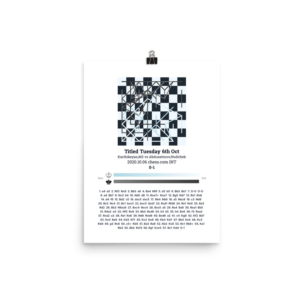 Museum-quality poster on thick, durable matte paper. A sharp, clean look for any chess visualisation.
