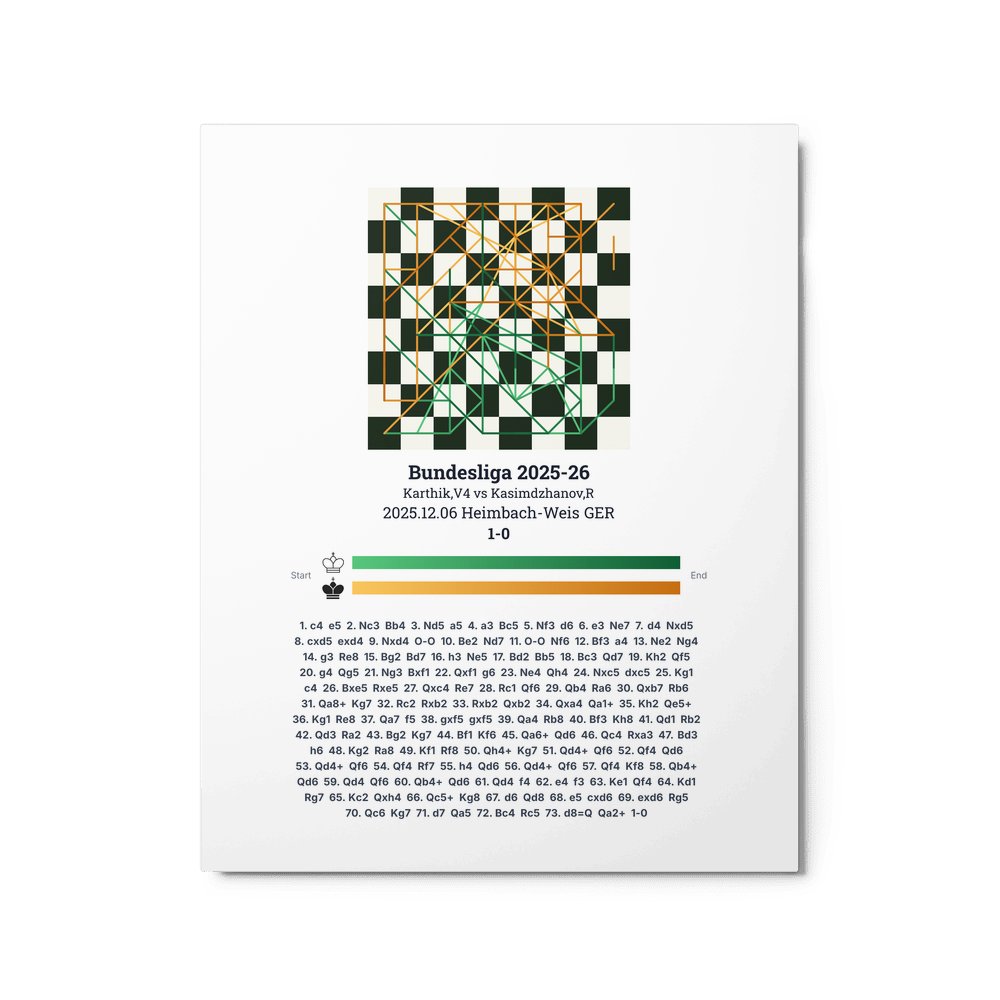 Museum-quality poster on thick, durable matte paper. A sharp, clean look for any chess visualisation.
