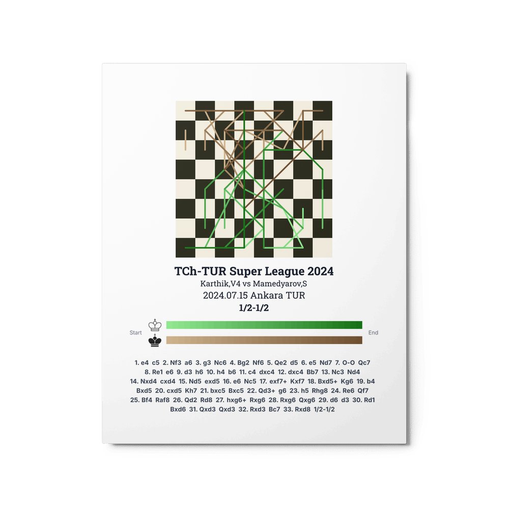 Museum-quality poster on thick, durable matte paper. A sharp, clean look for any chess visualisation.