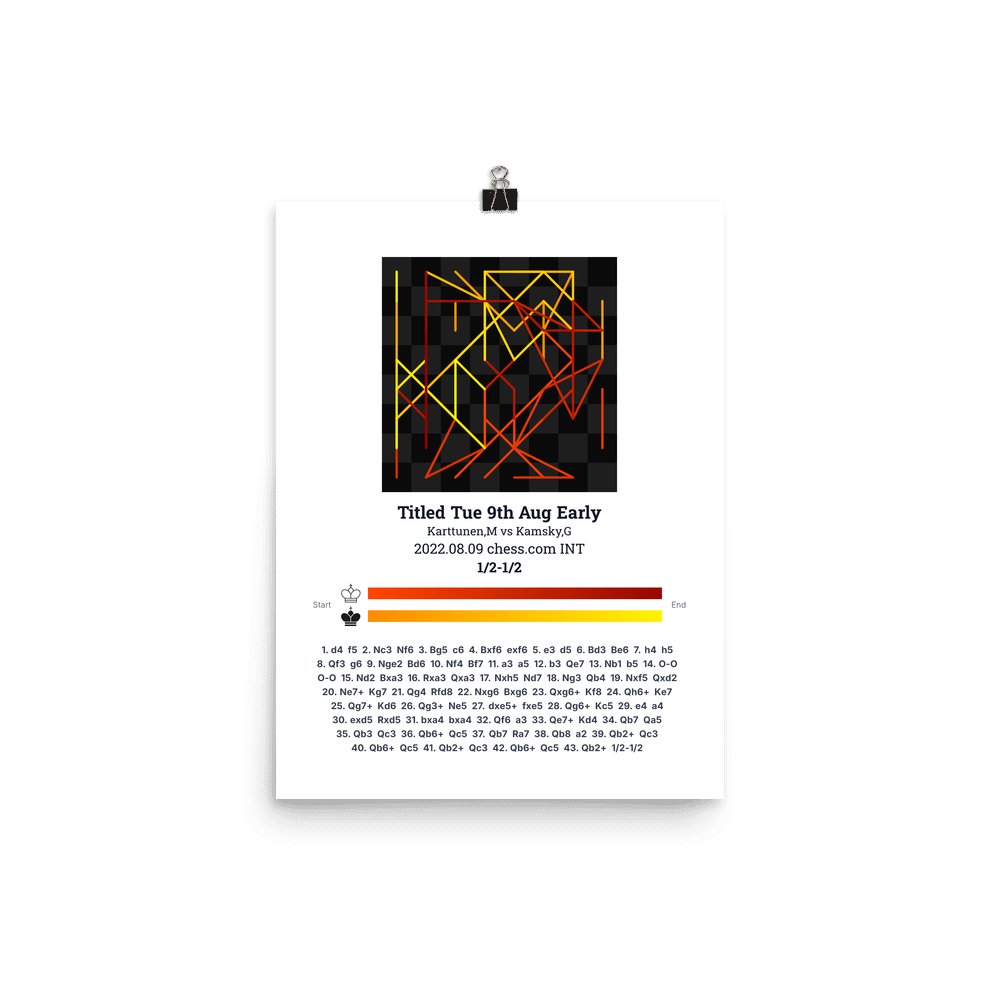 Museum-quality poster on thick, durable matte paper. A sharp, clean look for any chess visualisation.
