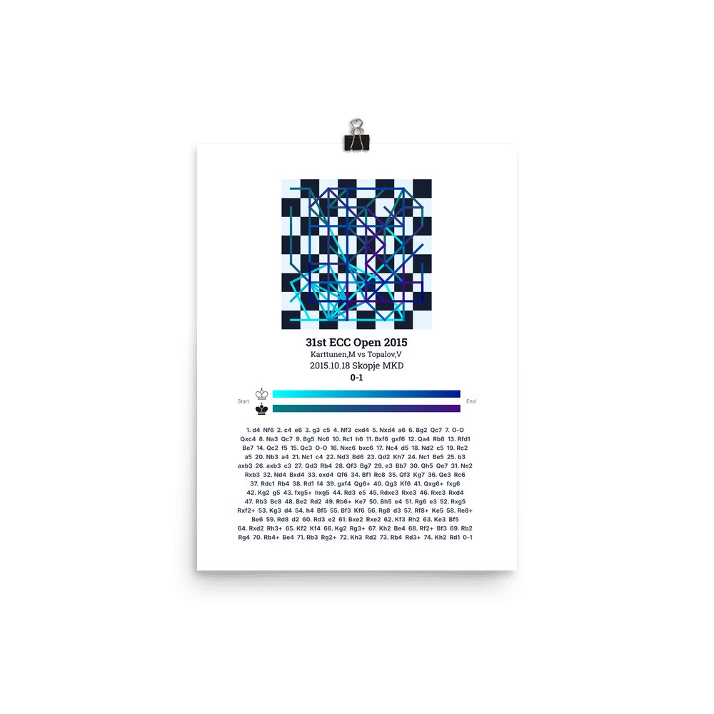 Museum-quality poster on thick, durable matte paper. A sharp, clean look for any chess visualisation.
