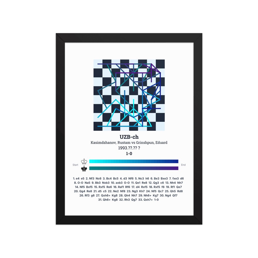 Museum-quality poster on thick, durable matte paper. A sharp, clean look for any chess visualisation.