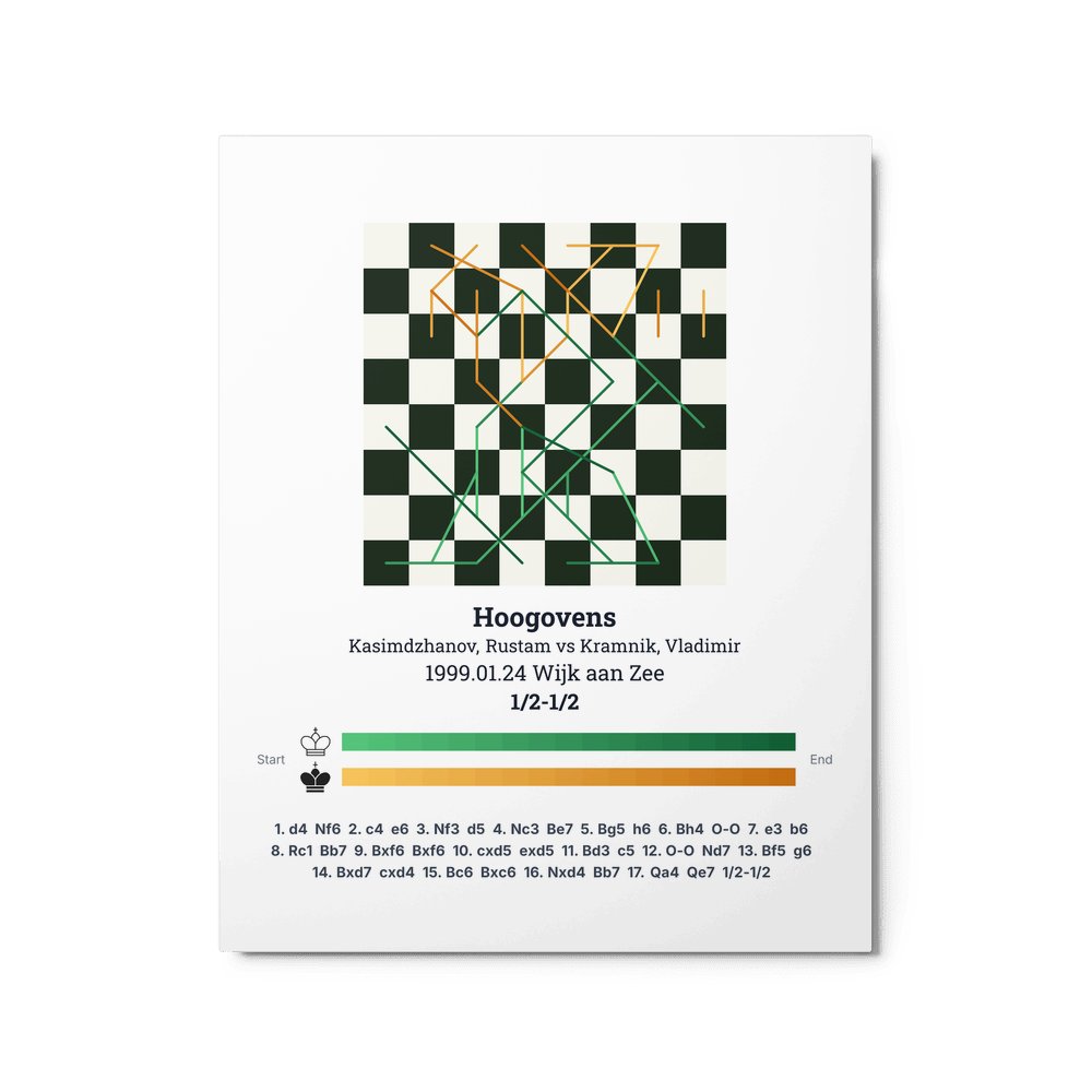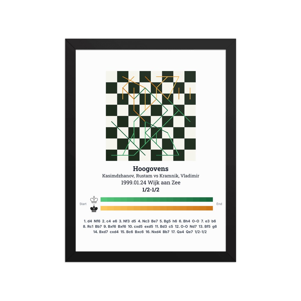 Museum-quality poster on thick, durable matte paper. A sharp, clean look for any chess visualisation.