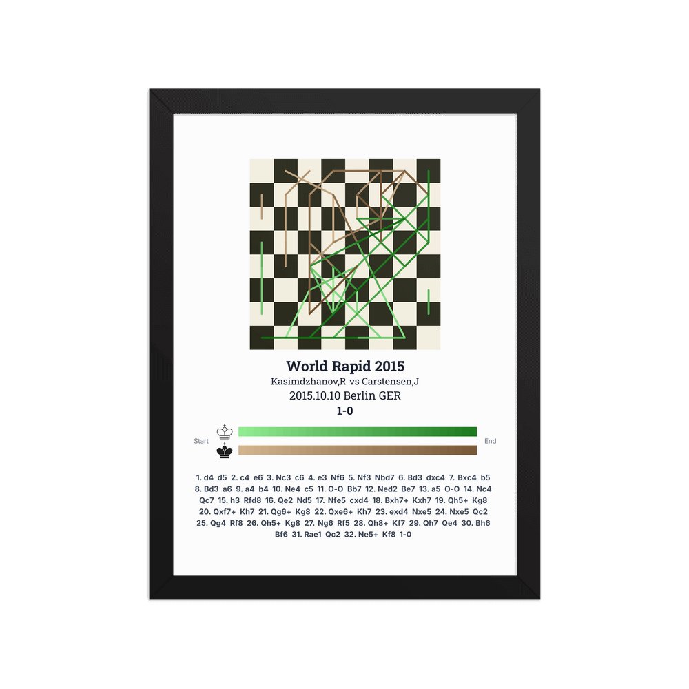 Museum-quality poster on thick, durable matte paper. A sharp, clean look for any chess visualisation.