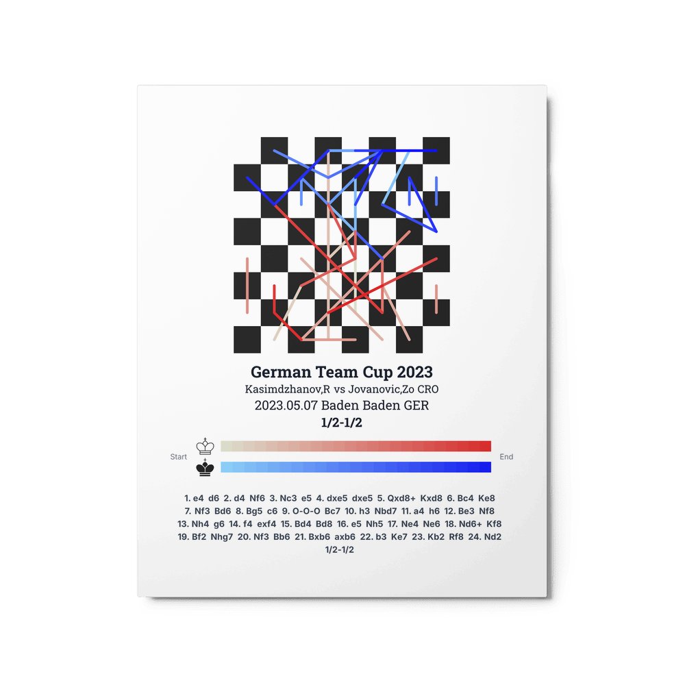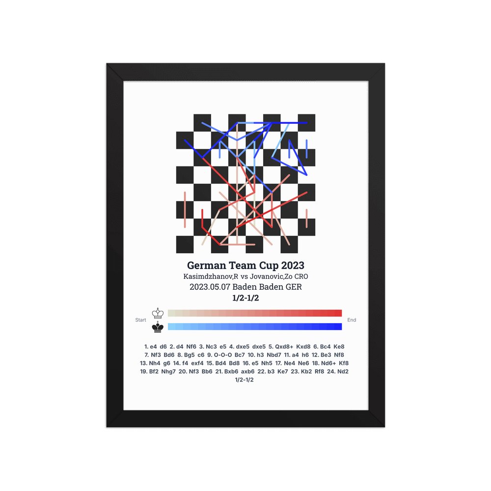 Museum-quality poster on thick, durable matte paper. A sharp, clean look for any chess visualisation.