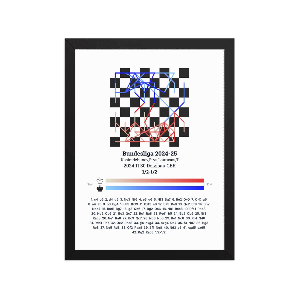 Museum-quality poster on thick, durable matte paper. A sharp, clean look for any chess visualisation.