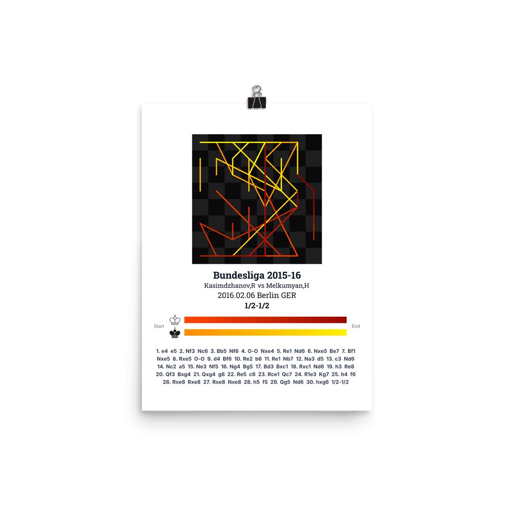 Museum-quality poster on thick, durable matte paper. A sharp, clean look for any chess visualisation.