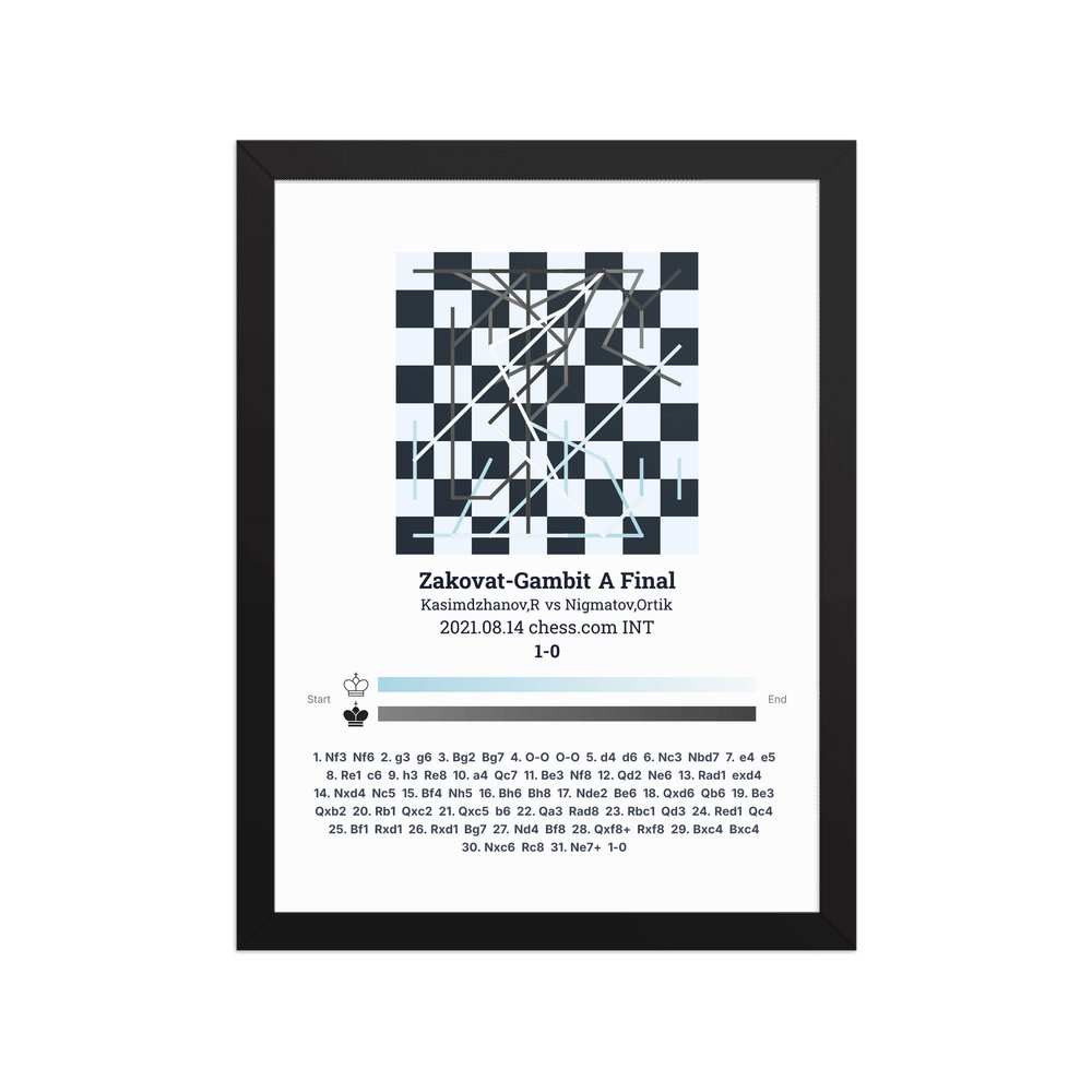 Museum-quality poster on thick, durable matte paper. A sharp, clean look for any chess visualisation.