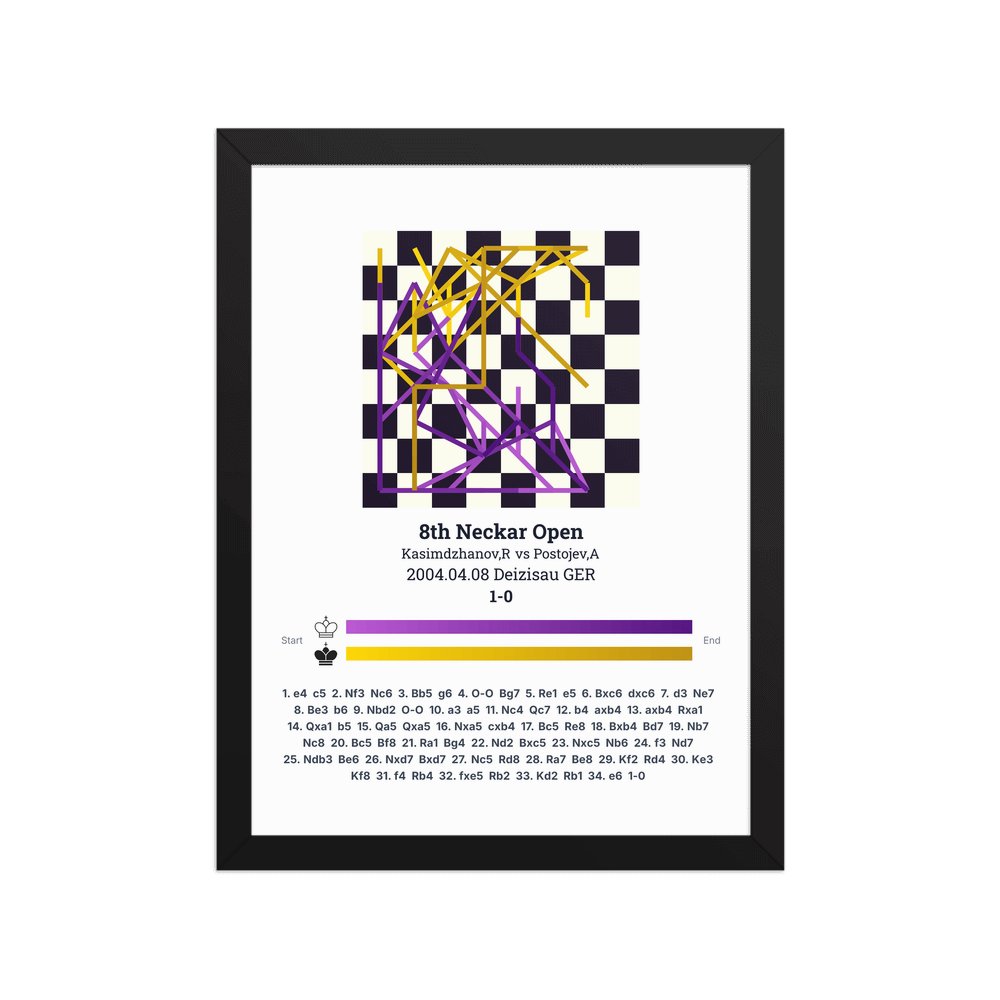 Museum-quality poster on thick, durable matte paper. A sharp, clean look for any chess visualisation.