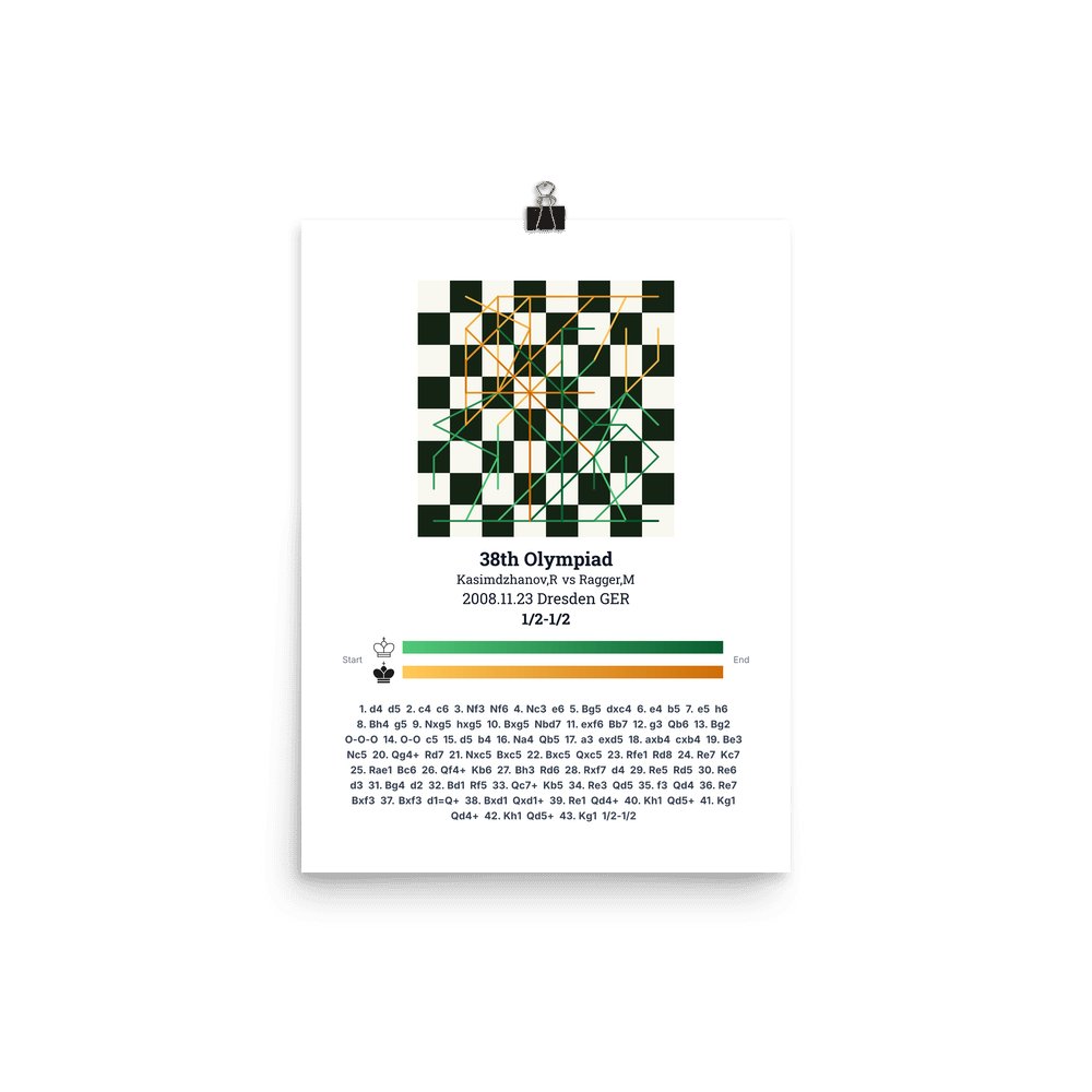 Museum-quality poster on thick, durable matte paper. A sharp, clean look for any chess visualisation.