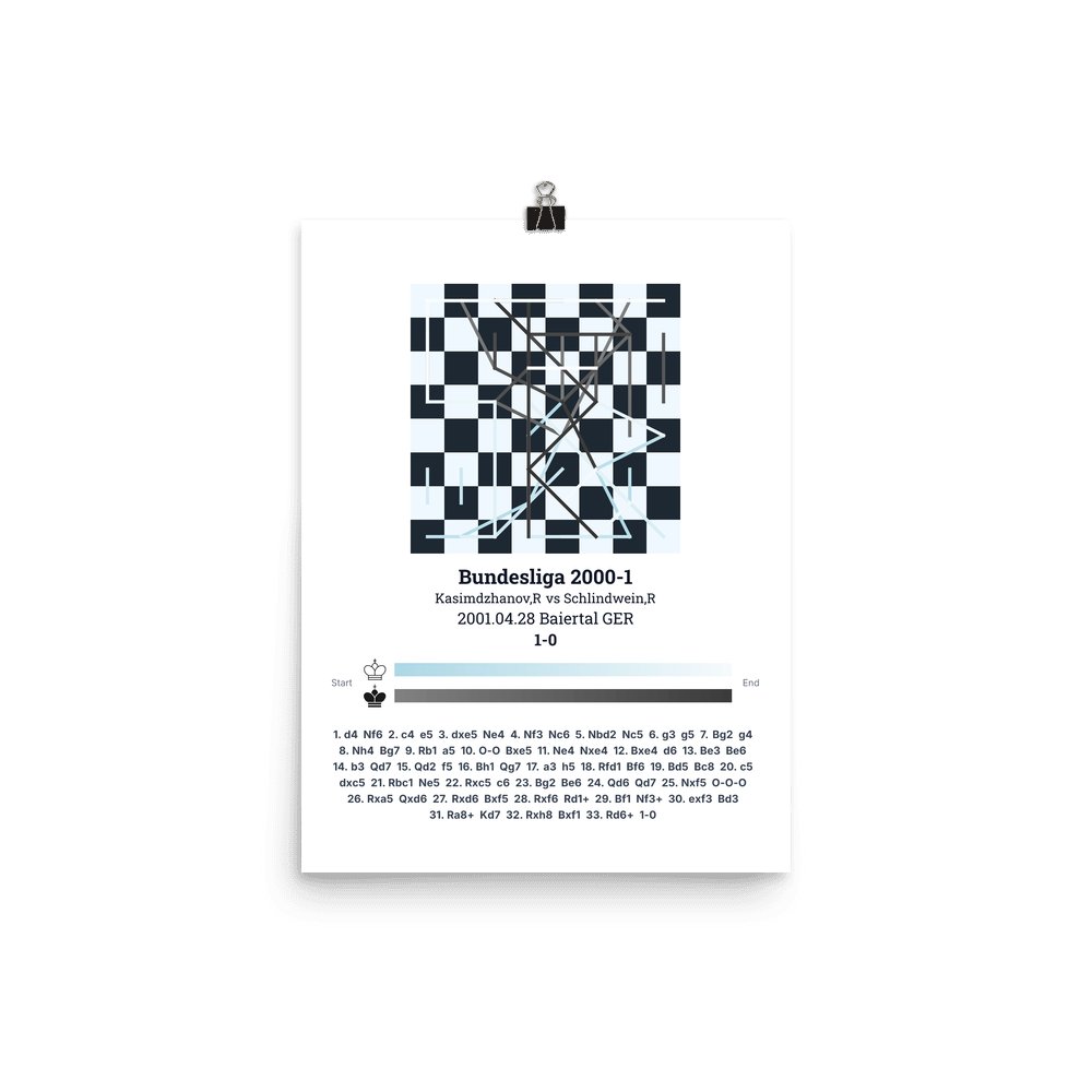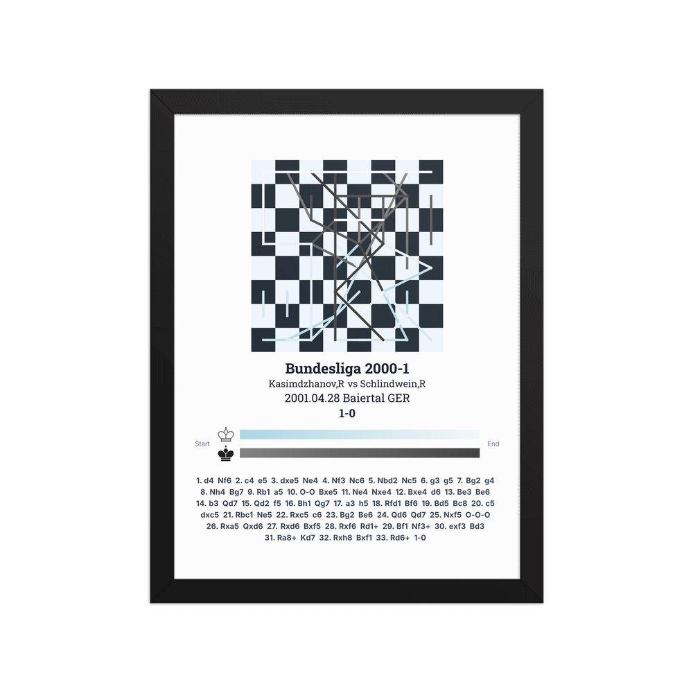 Museum-quality poster on thick, durable matte paper. A sharp, clean look for any chess visualisation.