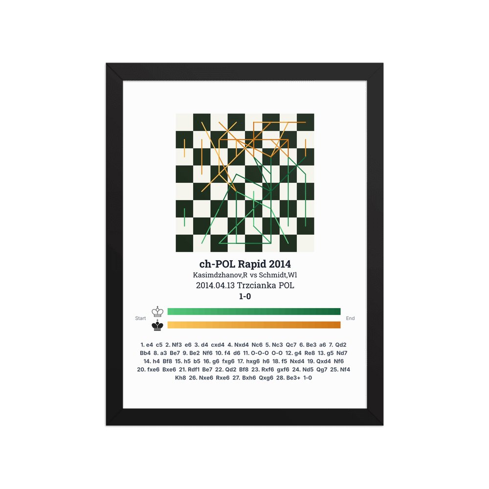 Museum-quality poster on thick, durable matte paper. A sharp, clean look for any chess visualisation.