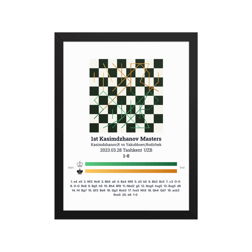 Museum-quality poster on thick, durable matte paper. A sharp, clean look for any chess visualisation.