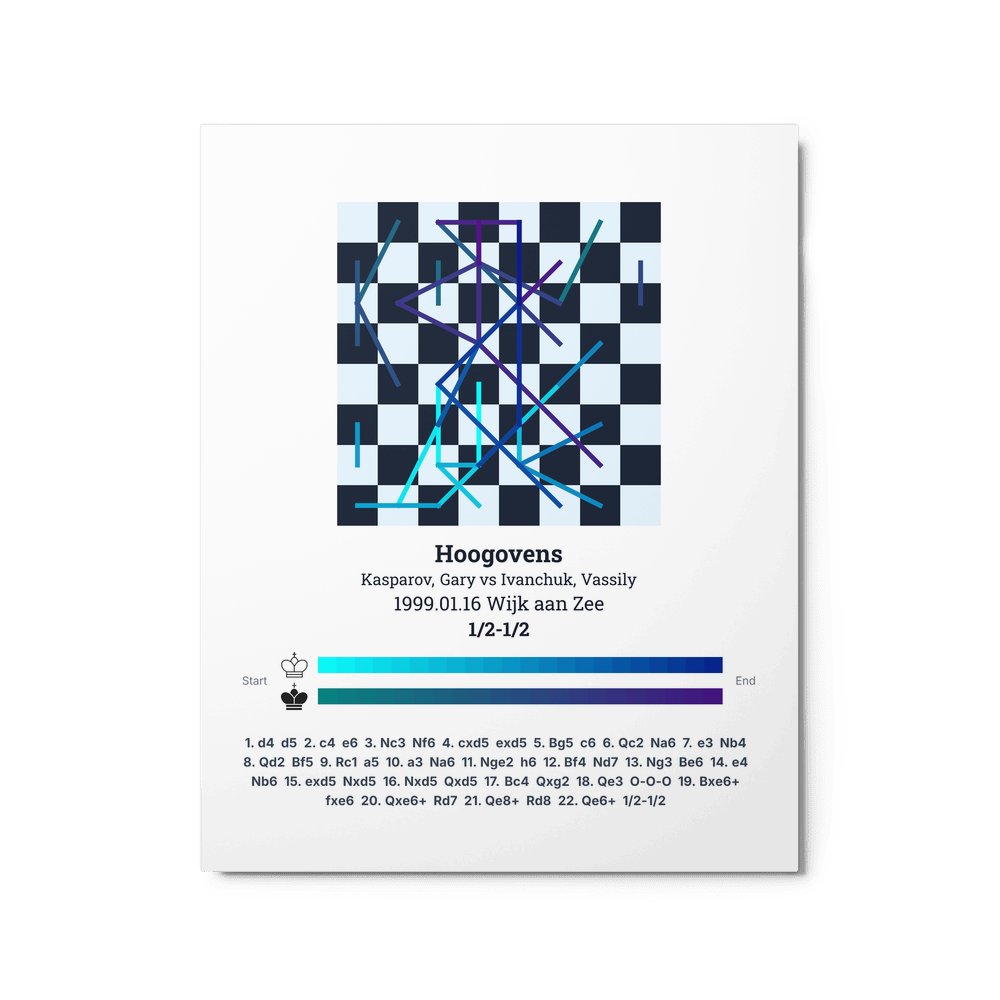 Museum-quality poster on thick, durable matte paper. A sharp, clean look for any chess visualisation.