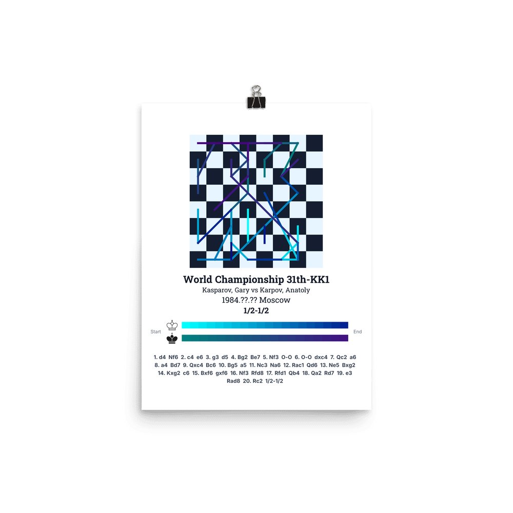 Museum-quality poster on thick, durable matte paper. A sharp, clean look for any chess visualisation.