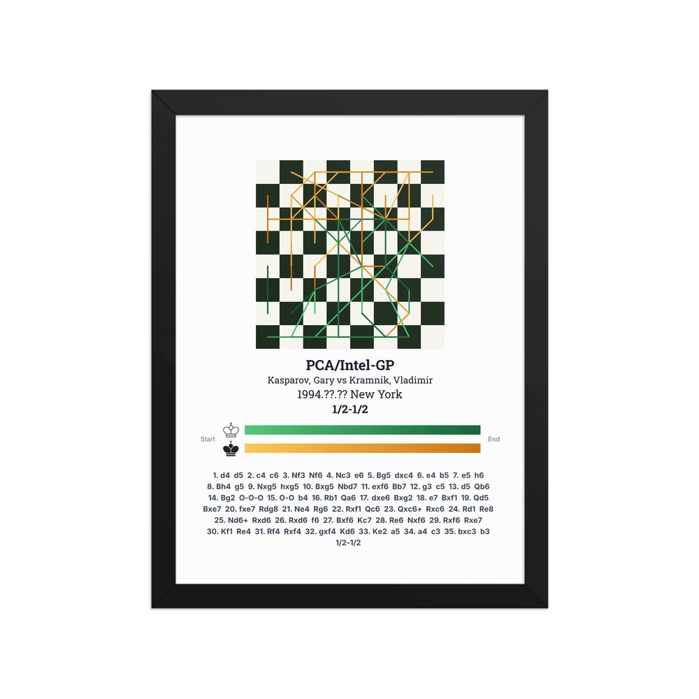 Museum-quality poster on thick, durable matte paper. A sharp, clean look for any chess visualisation.