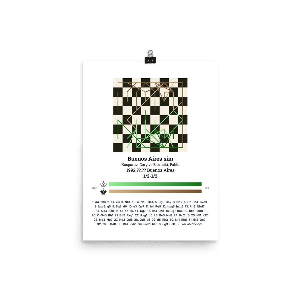 Museum-quality poster on thick, durable matte paper. A sharp, clean look for any chess visualisation.